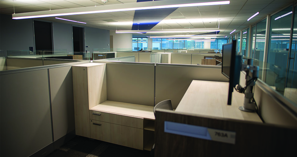 Ameris Bank had 244 Switch stations installed and chose to feature a mixture of Southwester and Fogo Harbour laminate with a silver trim, making it appeal to everyone in the office. This design choice lends for a clean modern look with a traditional spin to enhance the already amazing natural light and window space they currently hold.