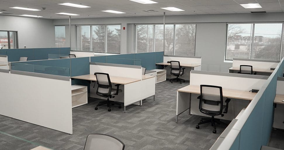 The new building’s stunning exterior, offering large-scale windows illuminated the space with natural light. In addition to workstations that fit each worker’s unique functions, Amphenol also wanted to ensure that the furniture did not interfere with natural lighting. Switch panels were chosen at 42” H with 8”H panel-mounted clear glass blades to allow ample light flow.
