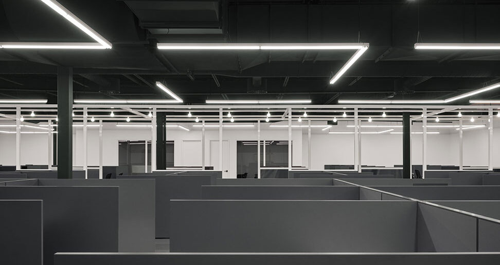 Switch was selected for the installation, which involved setting up a total of 166 L-shape workstations, 100 benching stations, and 31 private offices. The workstations were designed with Steel Grey fabric panels and a Charcoal paint color scheme, while the gallery panels featured the elegant Moonlight finish. To elevate the overall aesthetic, white surfaces and Fogo Harbour laminate were chosen for storage units, complemented with Horizon White handles for storage. For private offices, black metal accent color was chosen to create a striking contrast. By carefully selecting these finishes and configurations, Tayco ensured that Aubainerie’s office space achieved a cohesive and visually appealing environment that met their specific requirements.