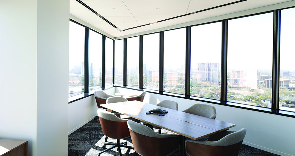 Goree, an award-winning architectural and design firm headquartered in Houston, TX, outgrew their 8,000 square foot office and needed an upgrade for their ever-growing team. The firm chose Sage Plaza, a Class A building in the Uptown/Galleria submarket of Houston. Goree quickly went to work designing a space focused on collaboration and workspace flexibility. When the pandemic hit, Goree expanded the floor plan to it’s current 18,000 square foot footprint to allow more square footage per employee and decided to rethink the original design. The workstations were redesigned with easily cleanable surfaces and higher privacy panels to allow for more physical distancing. Additional huddle rooms were added for small group meetings and as alternative spaces for employees to work during the day.