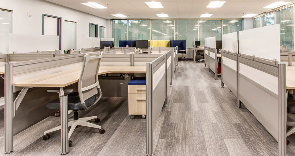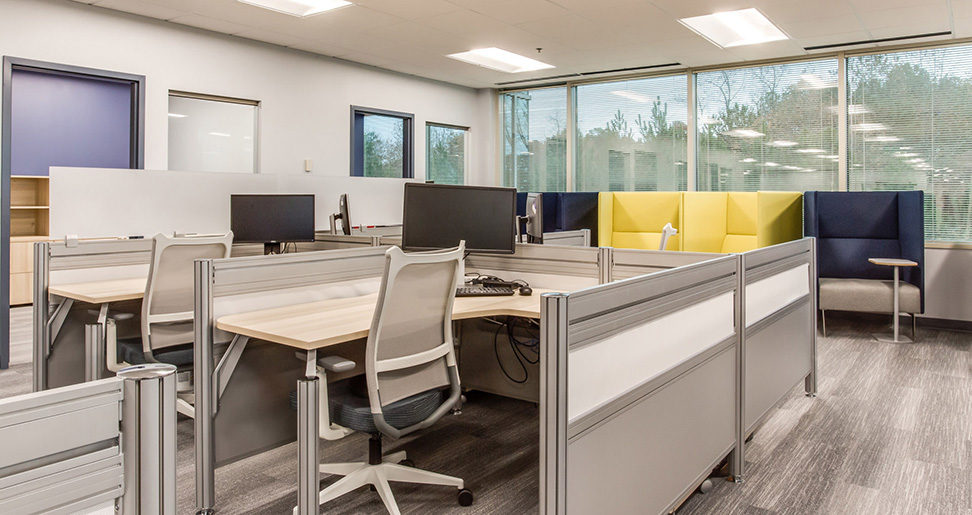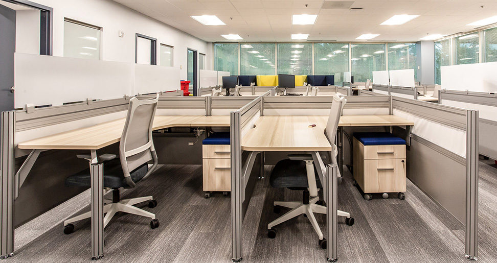 This modernized work space is a perfect example of how well the various Tayco lines can work together, and provide specialized features for various departments.