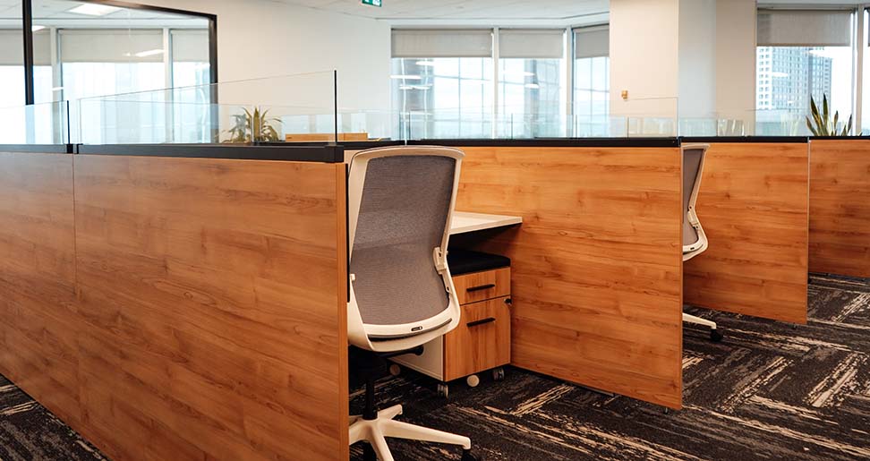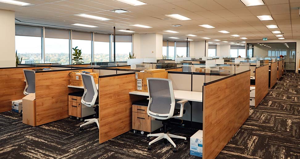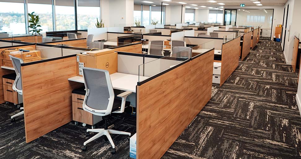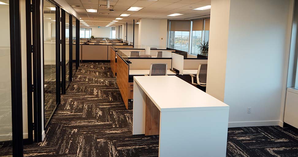 Tayco’s commercial design Team planned the space with 54 Switch workstations, four Halifax private offices, a Norris boardroom, Kip collaborative tables, seating, a Cosmo reception unit and Hanna tables for their lunchroom and prayer room.