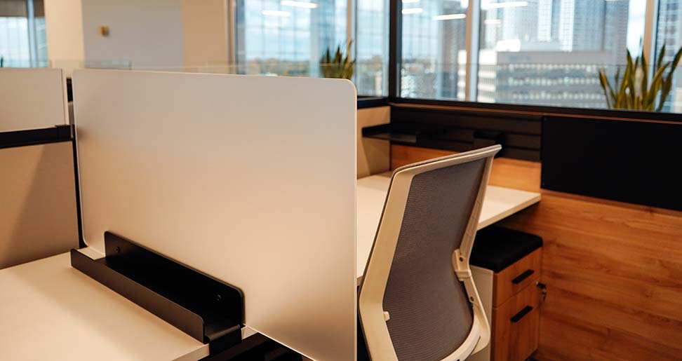 The open floor plan with strategically placed workstations allowed for the perfect amount of collaboration and privacy. Cosmo panels were chosen at 42” high with 8” glass blades to offer division while still allowing for ample light flow and sightlines to their stunning North facing view.