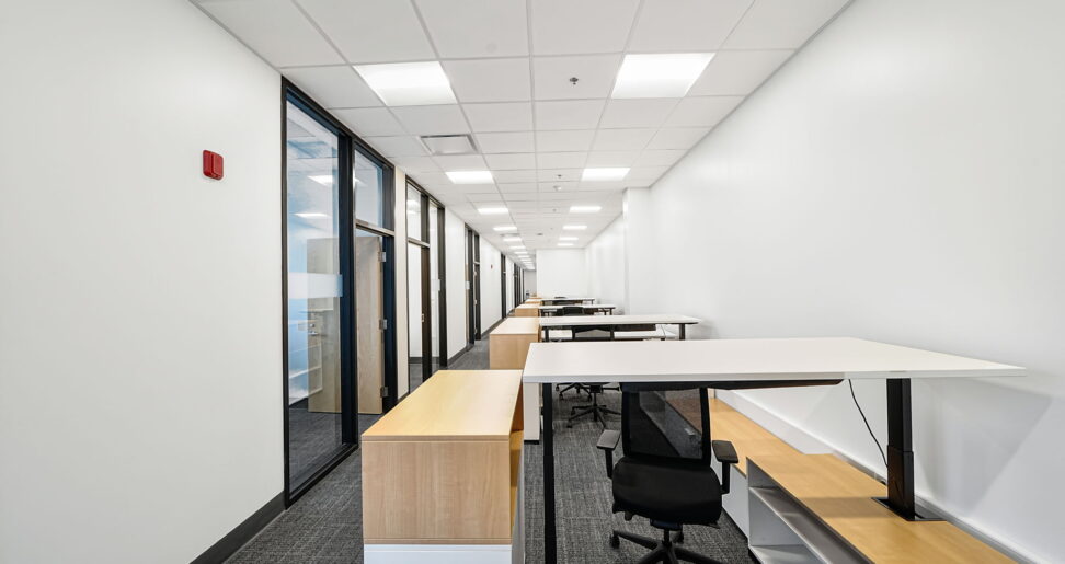 Each station incorporated J1 mesh task chairs in onyx with black frames, offering ergonomic support and durability for daily use. Integrated Flex cable organizers and modesty panels ensured clean, uncluttered lines, maintaining the spacious feel of the offices while discreetly supporting the technical needs of a modern workplace. By relying on minimalist storage solutions such as mobile pedestals and low credenzas, we eliminated bulky footprints, creating streamlined, efficient work areas.