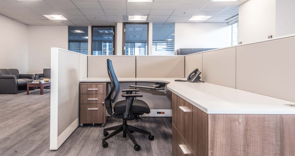 La polyvalence de Cosmo permet aux utilisateurs de créer l’harmonie parfaite pour leur bureau. Dans ce cas, Cosmo a été utilisé pour offrir des postes de travail privés sans obstruer la vue sur la ville et permettant à la lumière naturelle d’entrer en abondance.