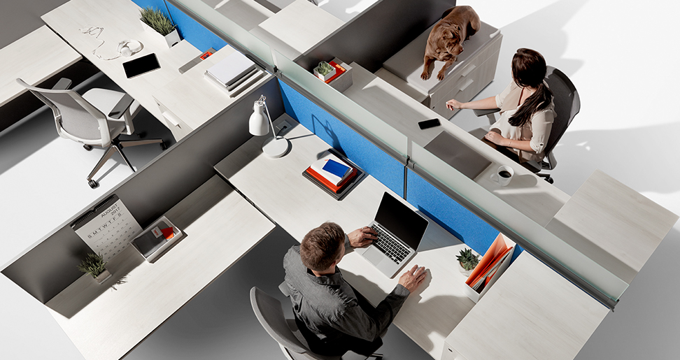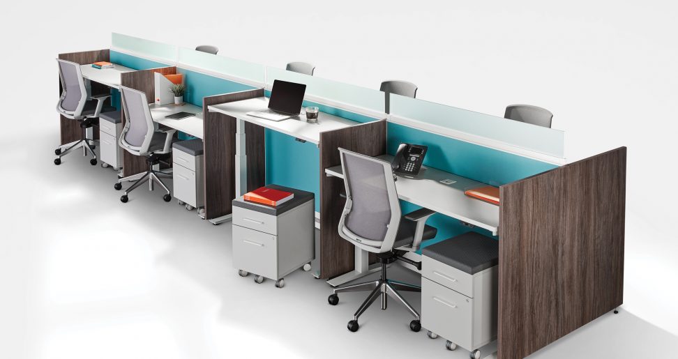 Switch est munie d’une gamme variée d’articles qui marient une conception intelligente et la rentabilité. Avec des diviseurs en verre trempé qui donnent une intimité, une surface de travail surélevée pour laisser 2,5 cm (1 po) d’espace pour le câblage, des pattes de table montées sur pignons à angle remarquables munies d’acier et de laminé, les possibilités sont vraiment infinies. Switch est un système à la conception épurée qui offre une puissante performance.