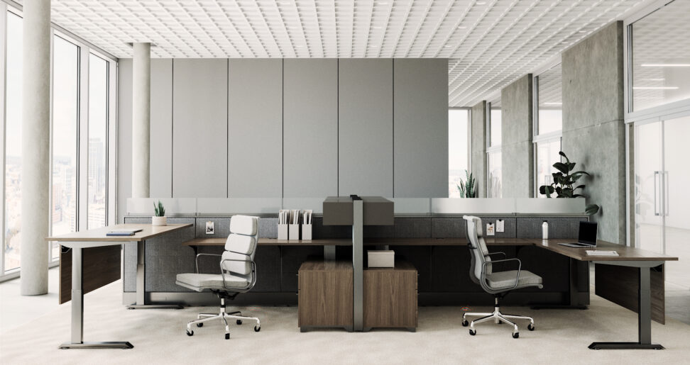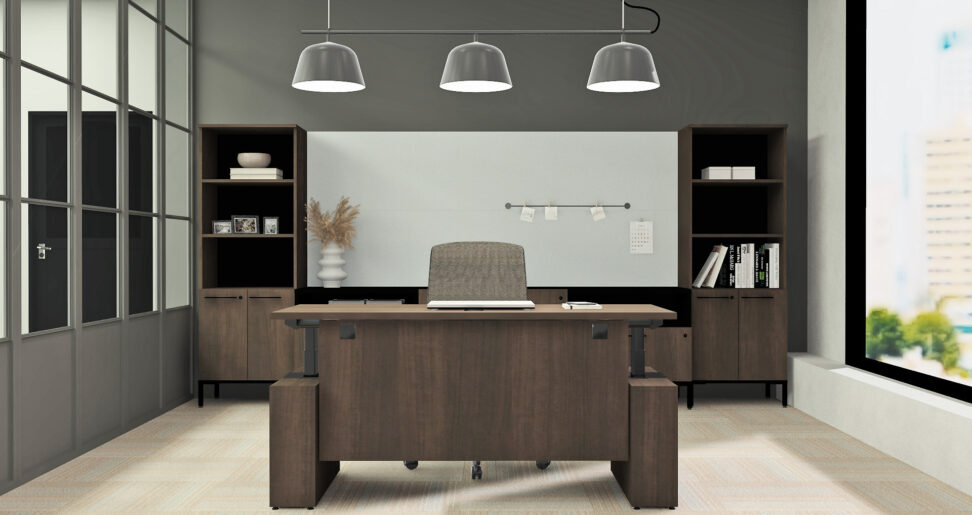 As technology becomes increasingly integrated into workspaces, it’s essential that office furniture supports seamless connectivity and organization. Tables equipped with features like USB and flush mount modules can help keep cables neatly managed and provide convenient access to power and data ports. This reduces clutter and helps maintain a streamlined, efficient workflow. the Kip and Norris tables offer these built-in technological features, ensuring users stay connected. Additionally, the Volley Height Adjustable Table enhances this technology by allowing users to save up to four memory presets, making it easier to move to their desired position with just a touch of a button. This combination of advanced technology and ergonomic design helps create a more efficient and user-friendly workspace.