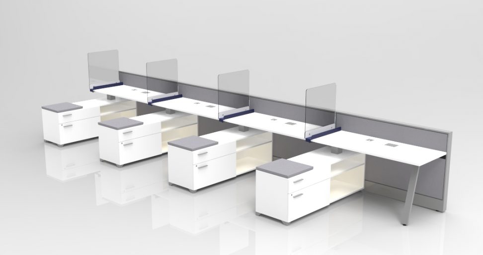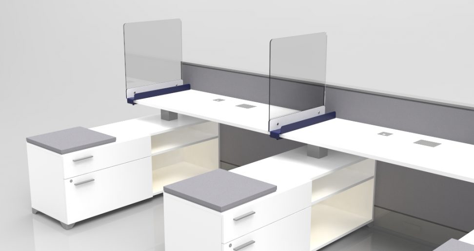 The Caddy Shield is offered at 24” high, with depths of 24”, 30”, 36”, 42” to extend past a worksurface and easily add additional safety to a workspace.