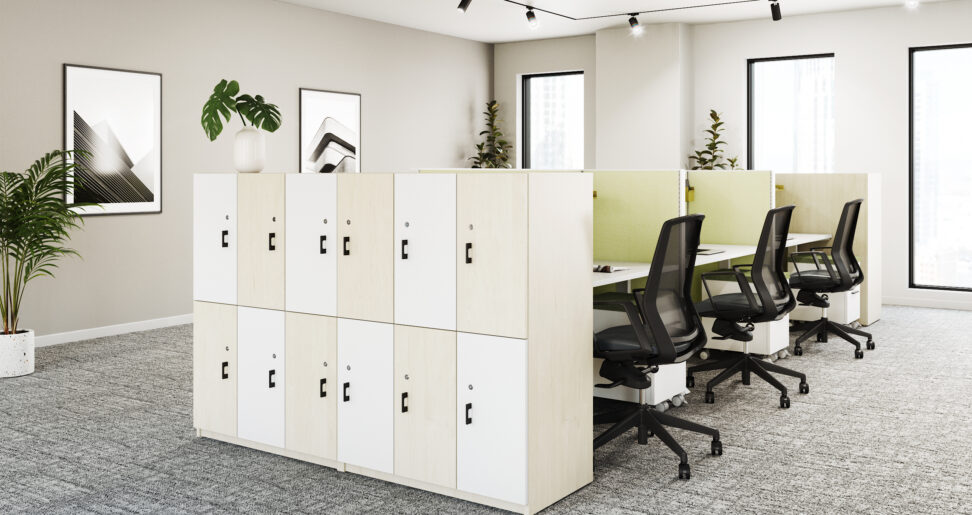 The Kubo Collection currently features Lockers and Personal Towers, demonstrating versatility in sizes and laminate options, along with different lock choices for enhanced security. Crafted from top-grade materials and designed with sturdy construction and customizable options, this collection effectively caters to diverse storage requirements in expansive workspace settings.
