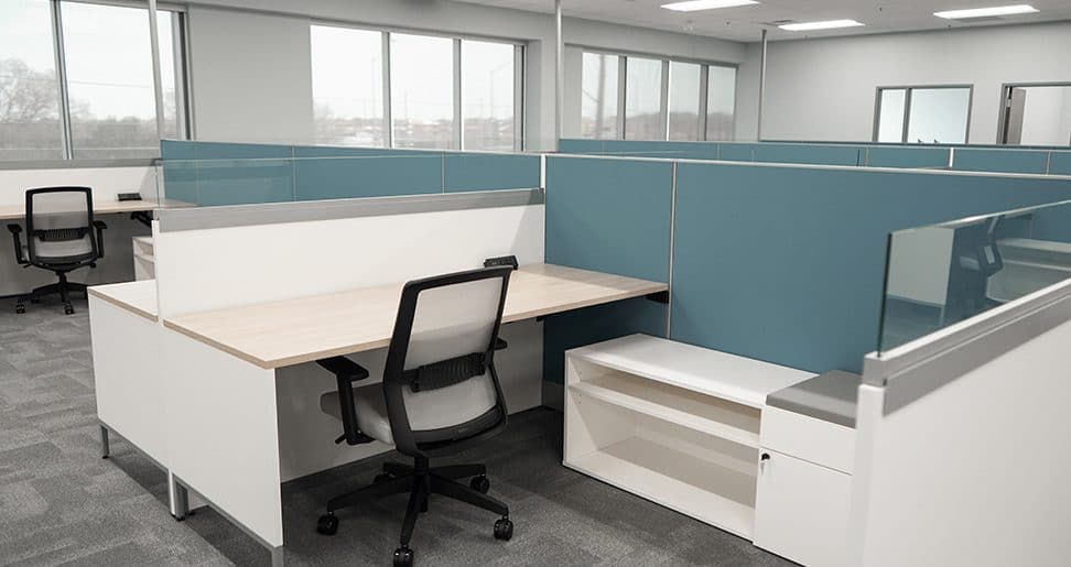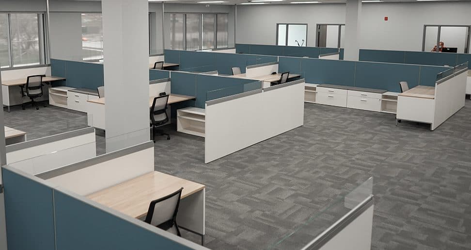 The new building’s stunning exterior, offering large-scale windows illuminated the space with natural light. In addition to workstations that fit each worker’s unique functions, Amphenol also wanted to ensure that the furniture did not interfere with natural lighting. Switch panels were chosen at 42” H with 8”H panel-mounted clear glass blades to allow ample light flow.