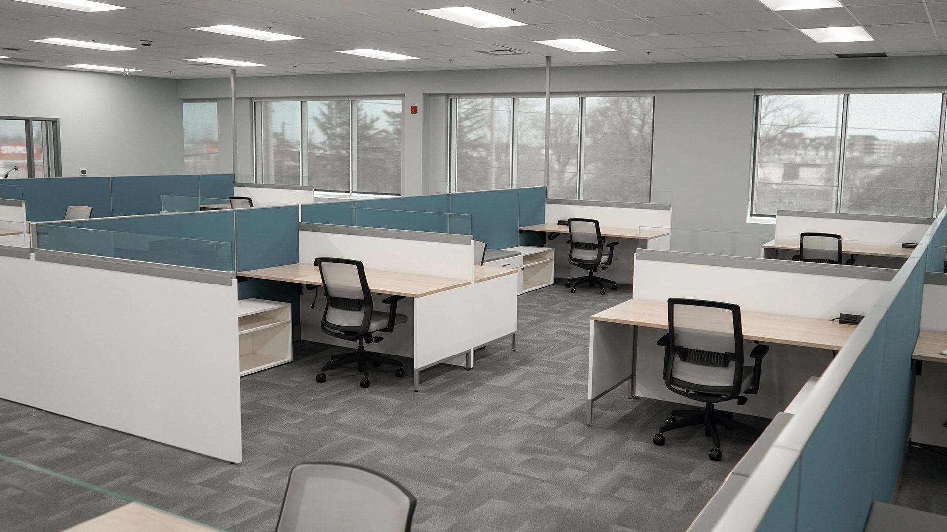 The project consisted of Tayco’s Switch systems and Scene casegoods product lines for a total of 61 workstations, nine private offices, two Norris boardrooms, a standing height Halifax table, and one Koko table for the bistro area.