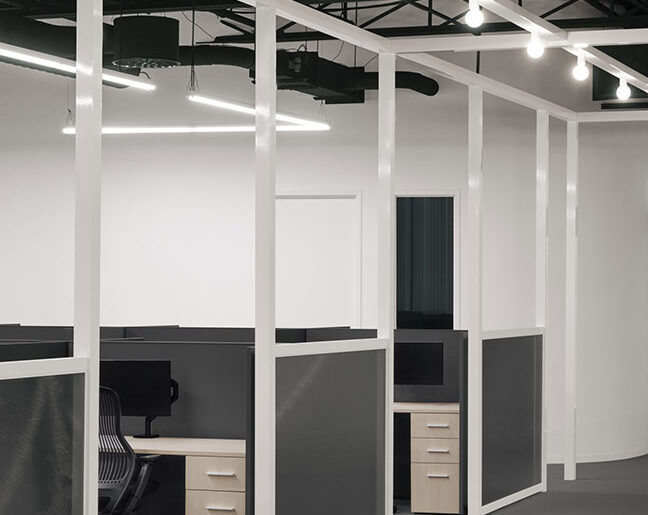 Switch was selected for the installation, which involved setting up a total of 166 L-shape workstations, 100 benching stations, and 31 private offices. The workstations were designed with Steel Grey fabric panels and a Charcoal paint color scheme, while the gallery panels featured the elegant Moonlight finish. To elevate the overall aesthetic, white surfaces and Fogo Harbour laminate were chosen for storage units, complemented with Horizon White handles for storage. For private offices, black metal accent color was chosen to create a striking contrast. By carefully selecting these finishes and configurations, Tayco ensured that Aubainerie’s office space achieved a cohesive and visually appealing environment that met their specific requirements.