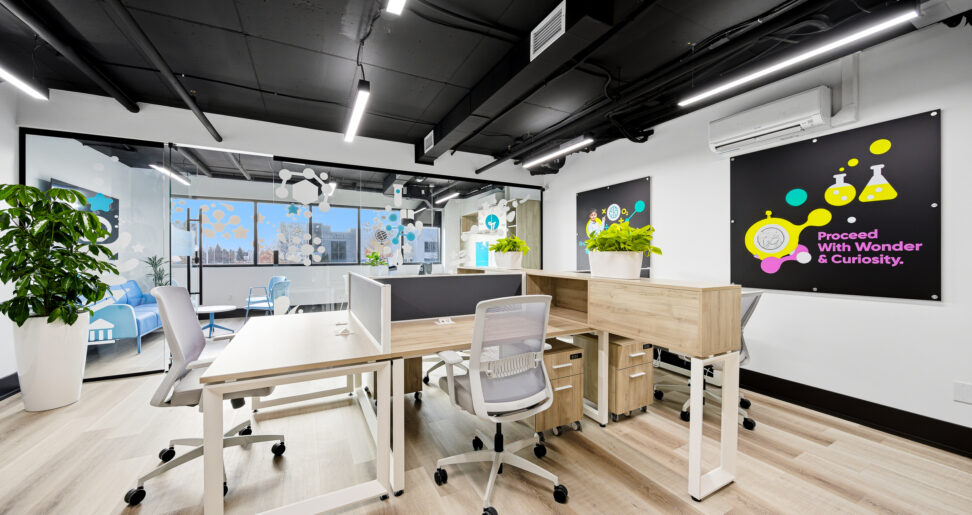 STEMstein Academy, an innovative educational organization focused on science, technology, engineering, and mathematics learning, was preparing to launch a new 3,000 sq. ft. facility. As a brand-new space, the project required a complete plan–design–build–furnish solution that would translate STEMstein’s bold brand identity into a physical environment while supporting modern, highly interactive learning styles.