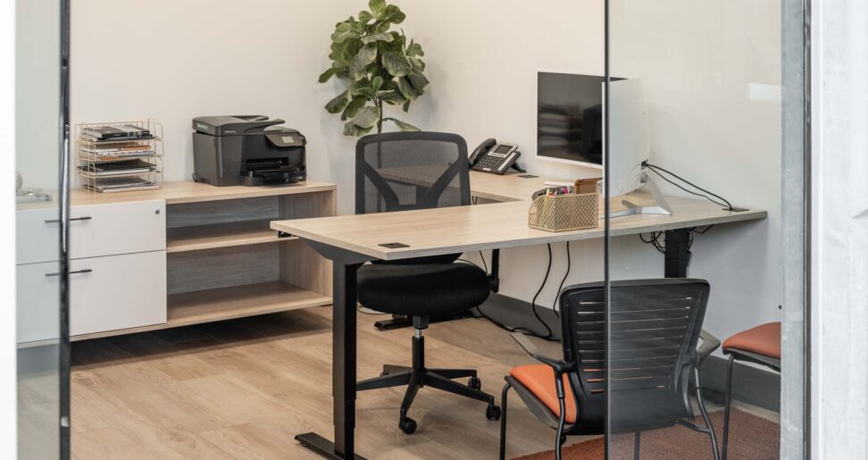 Given Empire’s need for extensive storage for samples and tools, the 4 private offices were equipped with Halifax storage solutions. High credenzas, single storage cabinets, and under-desk storage in Mojave melamine and vinyl paired with black metal accents provided ample, organized space, ensuring that employees had everything they needed within reach while maintaining a sleek, cohesive office aesthetic.