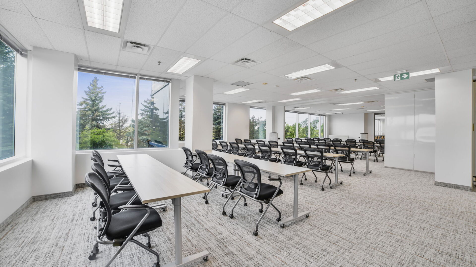 To meet ETFO’s need for a high-capacity, convertible training space, Tayco furnished two adjacent classrooms with Studi tables in a beautiful Acacia laminate finish. The ganging mechanism on each table allows for quick reconfiguration, from rows of individual seating to collaborative pods, making the room adaptable for training, workshops, or large presentations. Paired with J1 and M1 seating, the setup balances comfort with durability, ensuring long-term performance even under high usage. The cohesive finish palette helps establish a sense of warmth and professionalism, while the mobile, modular nature of the furnishings supports a truly flexible space.