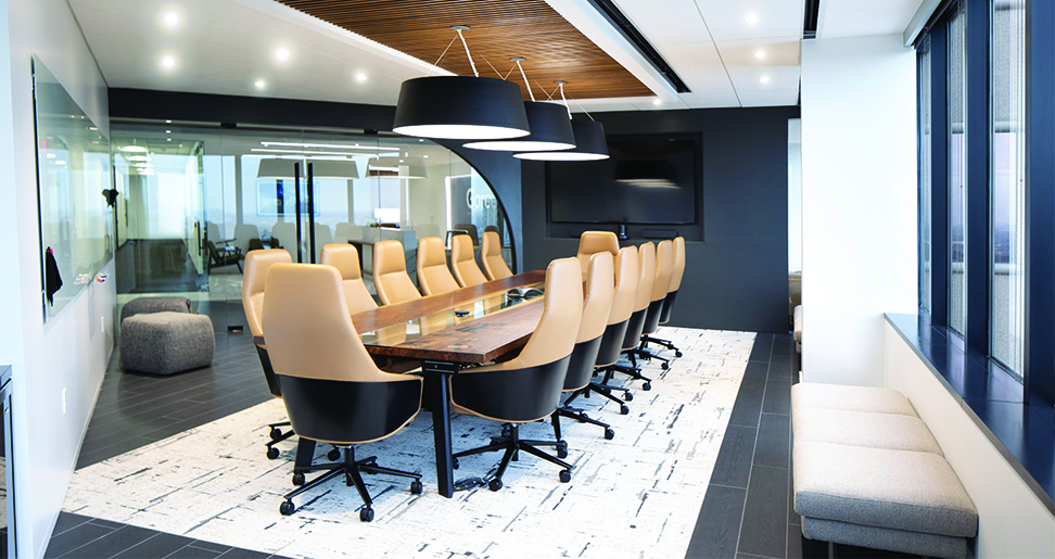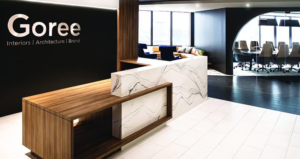 Goree, an award-winning architectural and design firm headquartered in Houston, TX, outgrew their 8,000 square foot office and needed an upgrade for their ever-growing team. The firm chose Sage Plaza, a Class A building in the Uptown/Galleria submarket of Houston. Goree quickly went to work designing a space focused on collaboration and workspace flexibility. When the pandemic hit, Goree expanded the floor plan to it’s current 18,000 square foot footprint to allow more square footage per employee and decided to rethink the original design. The workstations were redesigned with easily cleanable surfaces and higher privacy panels to allow for more physical distancing. Additional huddle rooms were added for small group meetings and as alternative spaces for employees to work during the day.
