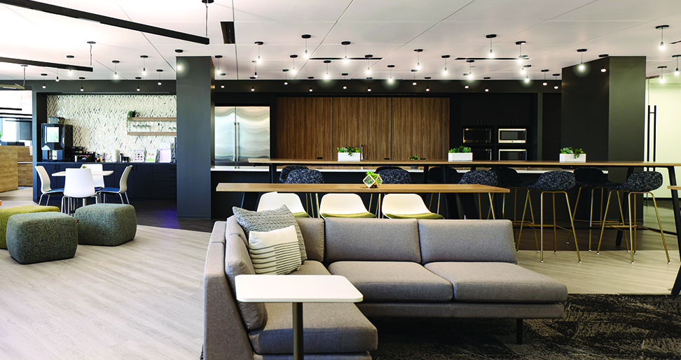 The office has 8 conference rooms ranging from traditional to more touch down style, several informal huddle rooms and spaces, two small phone booths, a wellness room, 9 private offices, 56 employee workstations, 4 intern stations, a large materials library for the interiors team, an admin breakroom, and a large employee lounge with a variety of seating and working areas employees can utilize throughout the day.
