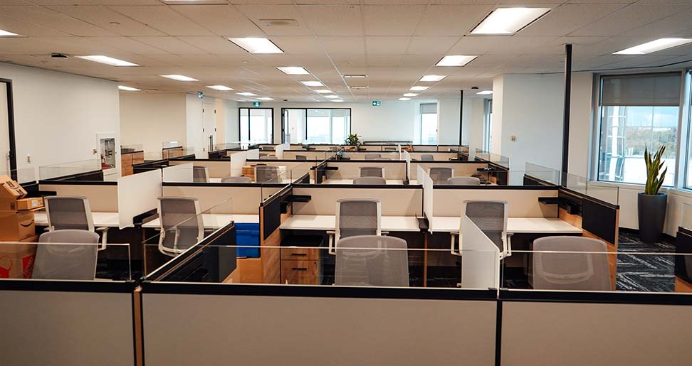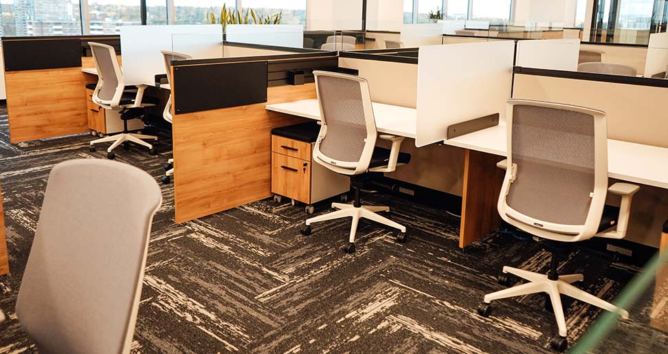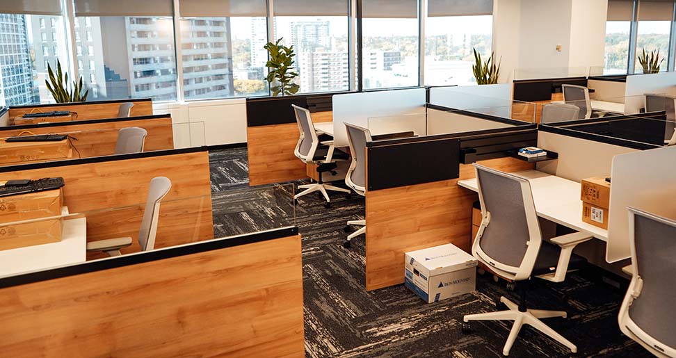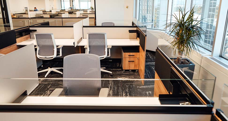 Tayco’s commercial design Team planned the space with 54 Switch workstations, four Halifax private offices, a Norris boardroom, Kip collaborative tables, seating, a Cosmo reception unit and Hanna tables for their lunchroom and prayer room.