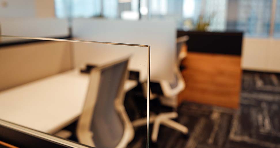 The open floor plan with strategically placed workstations allowed for the perfect amount of collaboration and privacy. Cosmo panels were chosen at 42” high with 8” glass blades to offer division while still allowing for ample light flow and sightlines to their stunning North facing view.
