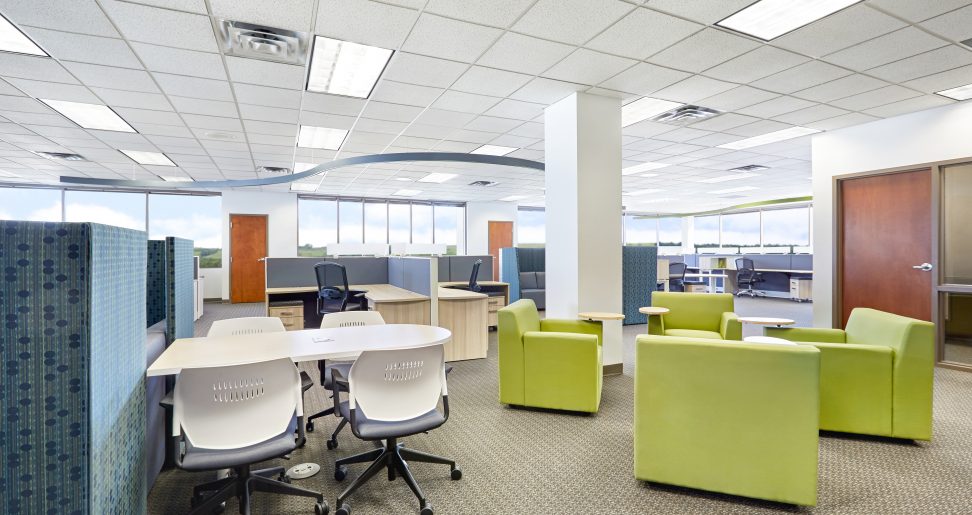 The Scene and Cosmo integration with splashes of colour, provided an open, bright workspace for Butler University that brought style and efficiency to what was originally an empty canvas. The workplace is visually interesting with integrated workspaces that did not depart from the desire for elements of personal, private space.