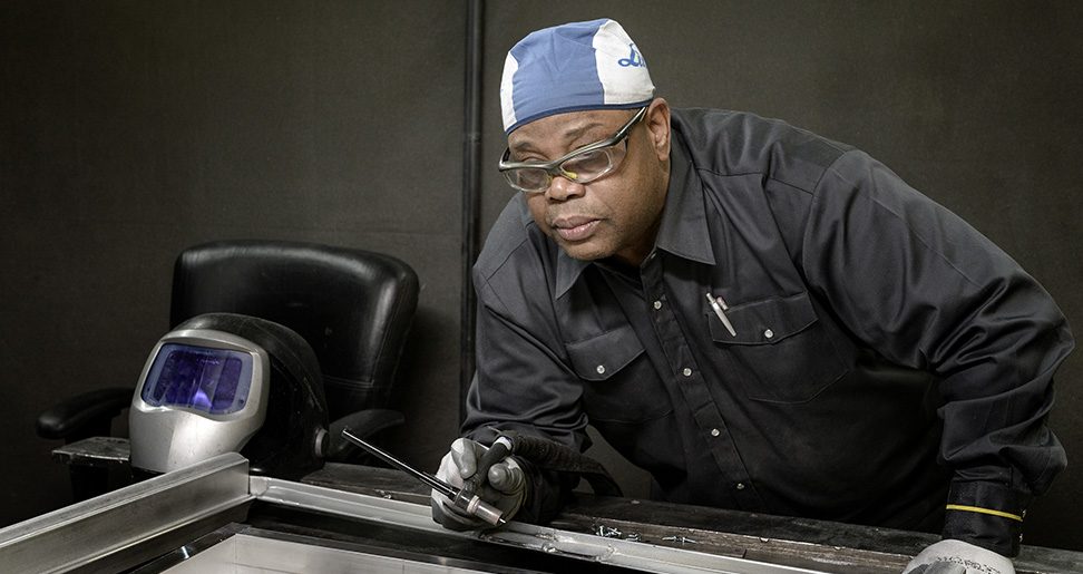 À la rencontre de Copeland Foote, soudeur à Tayco. Copeland est soudeur à Tayco depuis près de quatre ans et il se spécialise dans le soudage des produits en aluminium. Il a acquis une vaste expérience et maîtrise parfaitement deux processus de soudage spécialisés : le soudage à l’arc sous protection gazeuse (MIG) et le soudage à l’arc sous protection gazeuse avec électrode de tungstène (TIG).