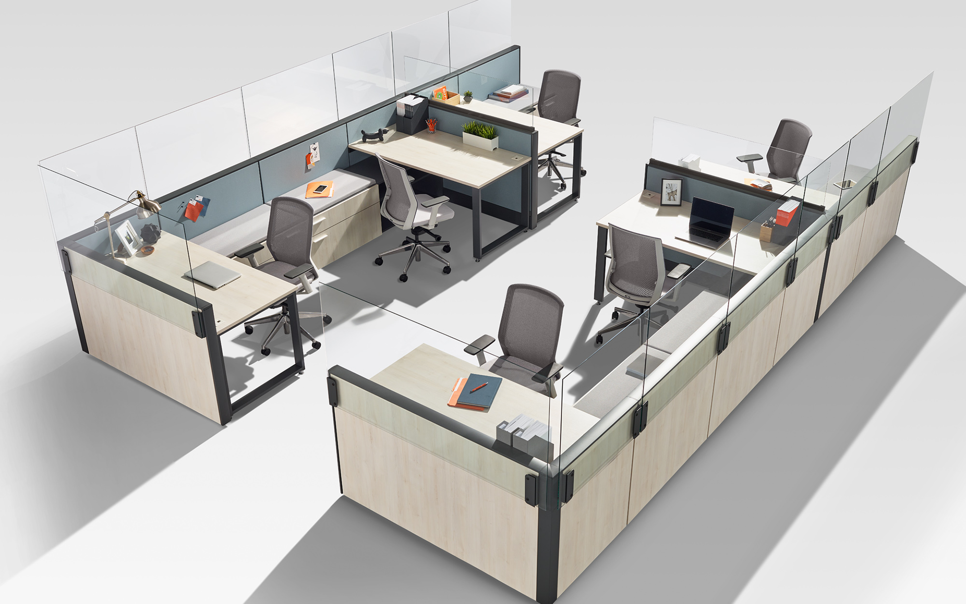 Panels are a practical solution for adding privacy to open office layouts, offering organizations the flexibility to tailor their spaces to specific needs. Available in various systems, panels can feature options like gallery designs and frameless blades, creating a sleek, modern aesthetic. With materials such as laminate, fabric, tempered glass, or combinations of these, panels provide versatile choices to suit different workspace styles and functional requirements.