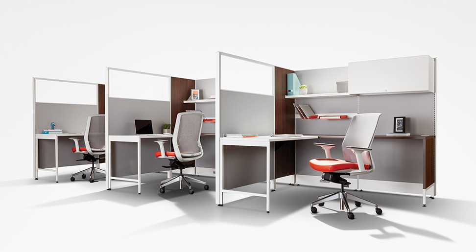 Match Switch to the unique needs of any workspace with the addition of either a sliding or hinge door, segmented glass, and choose from a series of panel, worksurface depth and leg options.