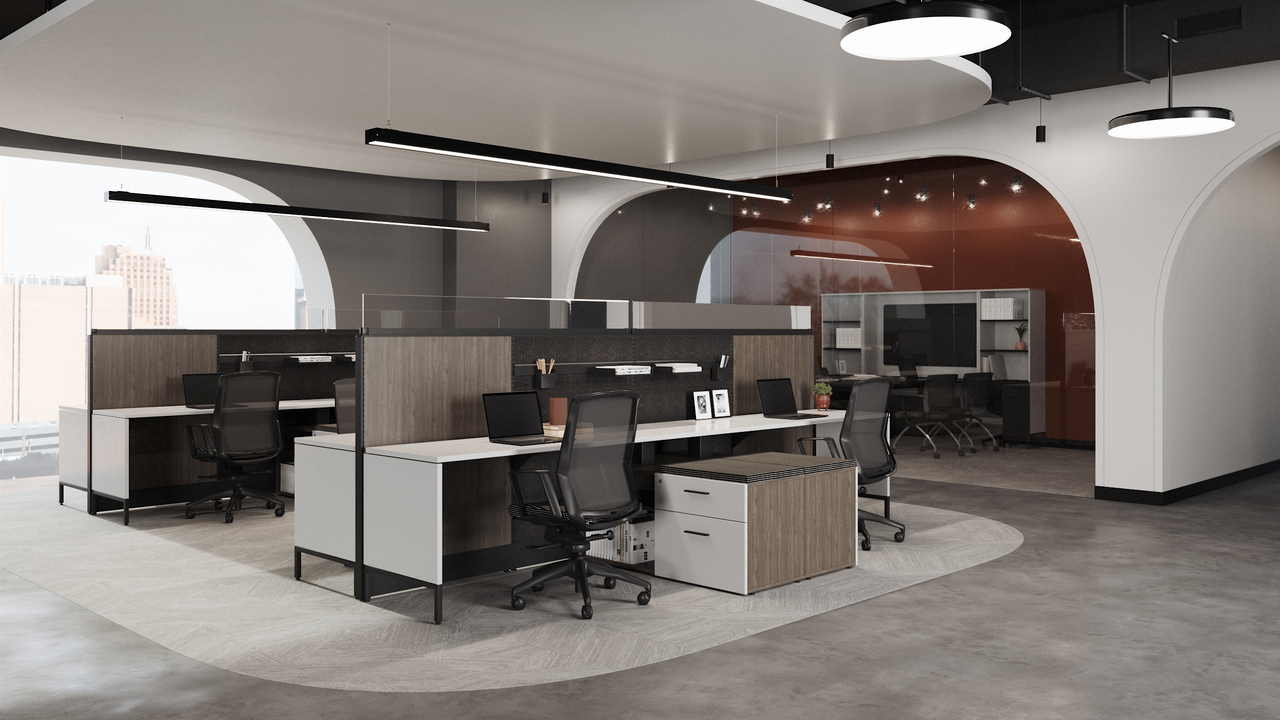 Match Switch to the unique needs of any workspace with the addition of either a sliding or hinge door, segmented glass, and choose from a series of panel, worksurface depth and leg options.