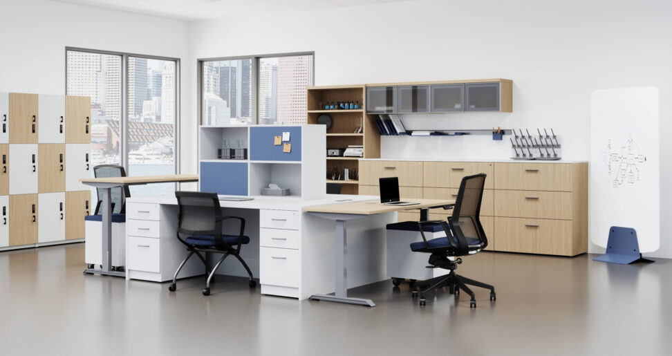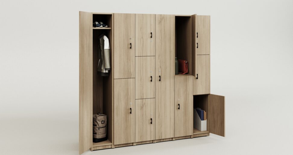 The Kubo Collection currently features Lockers and Personal Towers, demonstrating versatility in sizes and laminate options, along with different lock choices for enhanced security. Crafted from top-grade materials and designed with sturdy construction and customizable options, this collection effectively caters to diverse storage requirements in expansive workspace settings.
